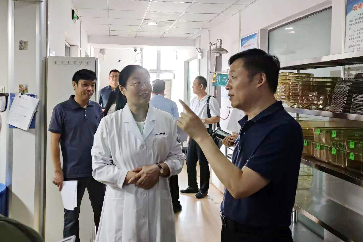 汇报会后,专家组一行到医教研4楼、医学院前沿实验中心、精准研究院进行了实地全面考察,详细了解了我校院士工作站的建设情况。