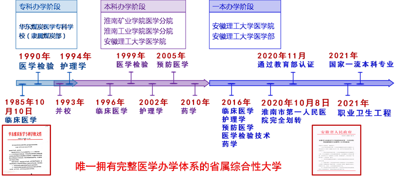 医学院前身为成立于1985年的原煤炭工业部所属“华东煤炭医学专科学校”,是全国最早为煤炭行业培养医学人才的两所部属高校之一;1993年与原煤炭部所属“淮南矿业学院”合并;2002年随学校更名为安徽理工大学医学院。